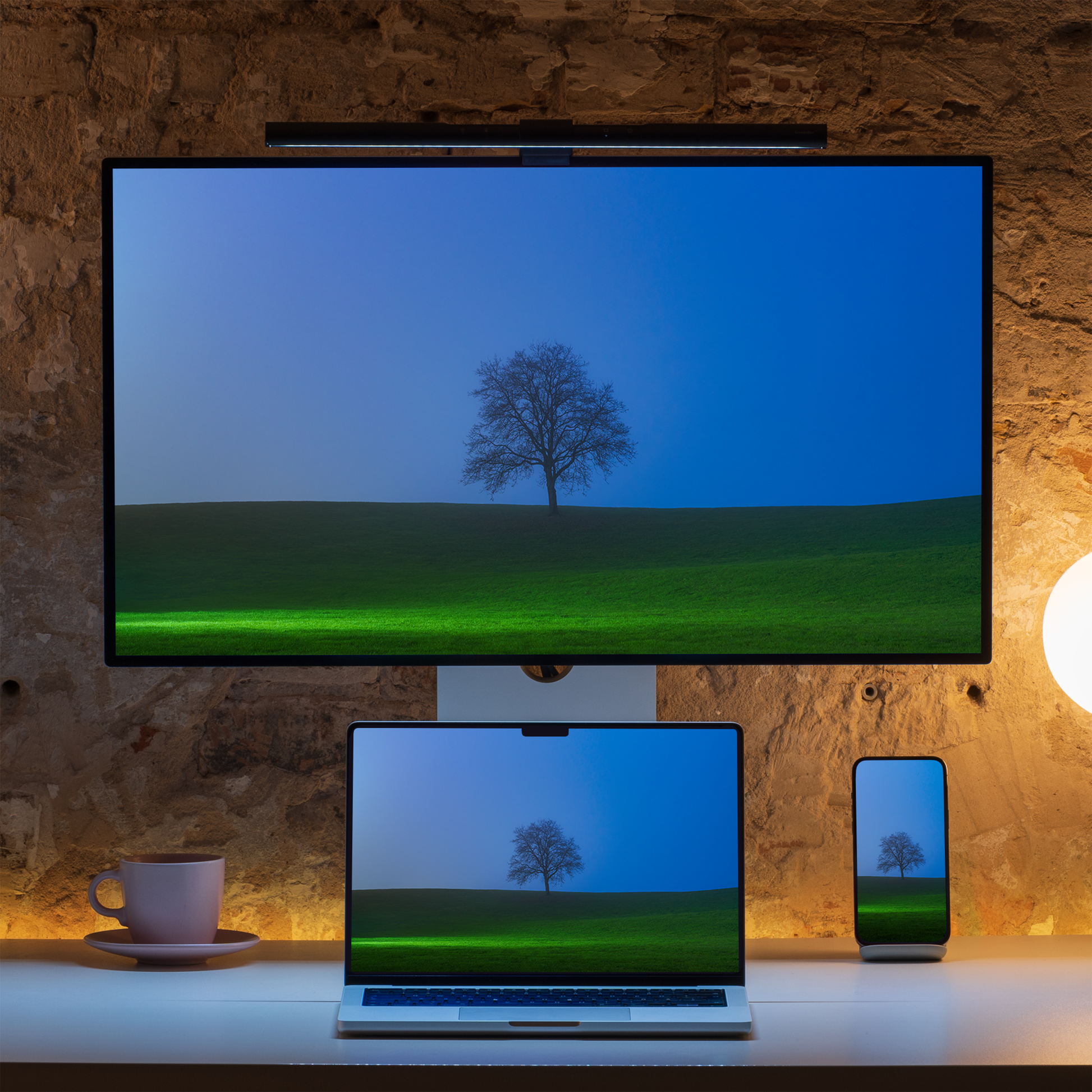 Adaptives Hintergrundbild, das sich je nach Tageszeit dynamisch der Lichtstimmung anpasst.