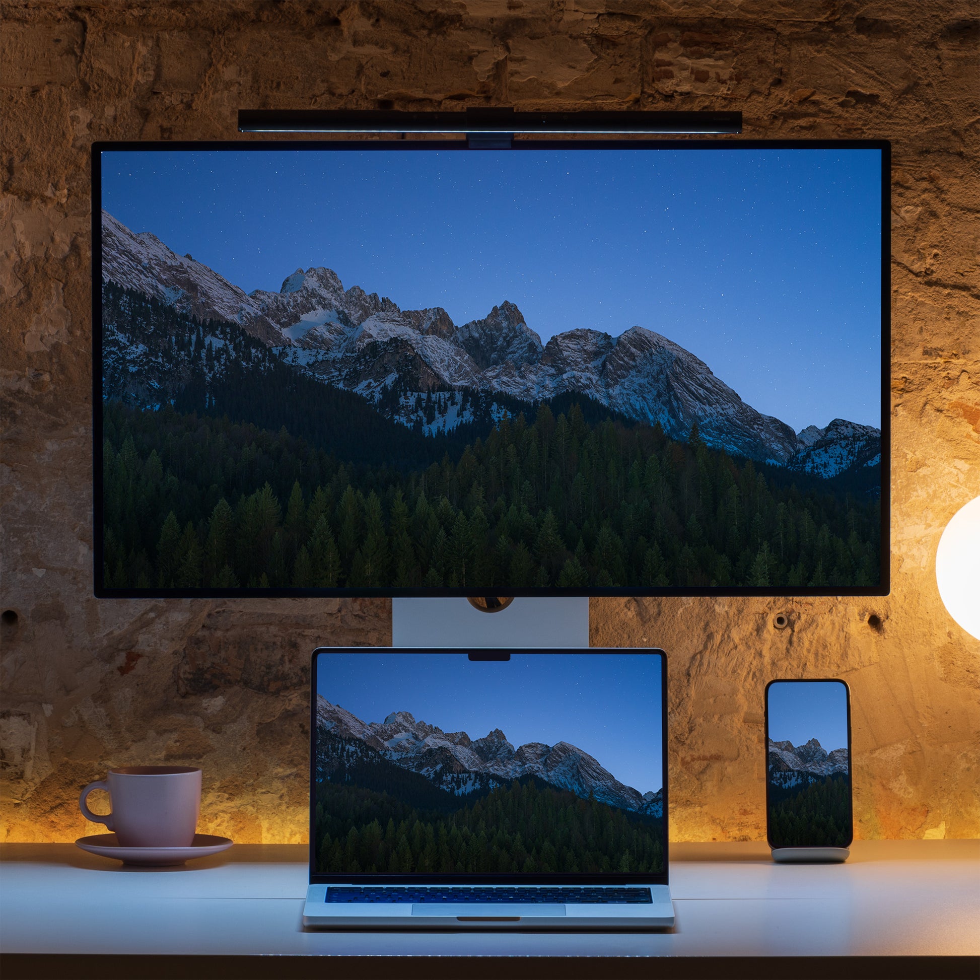 Adaptives Hintergrundbild, das sich je nach Tageszeit dynamisch der Lichtstimmung anpasst.